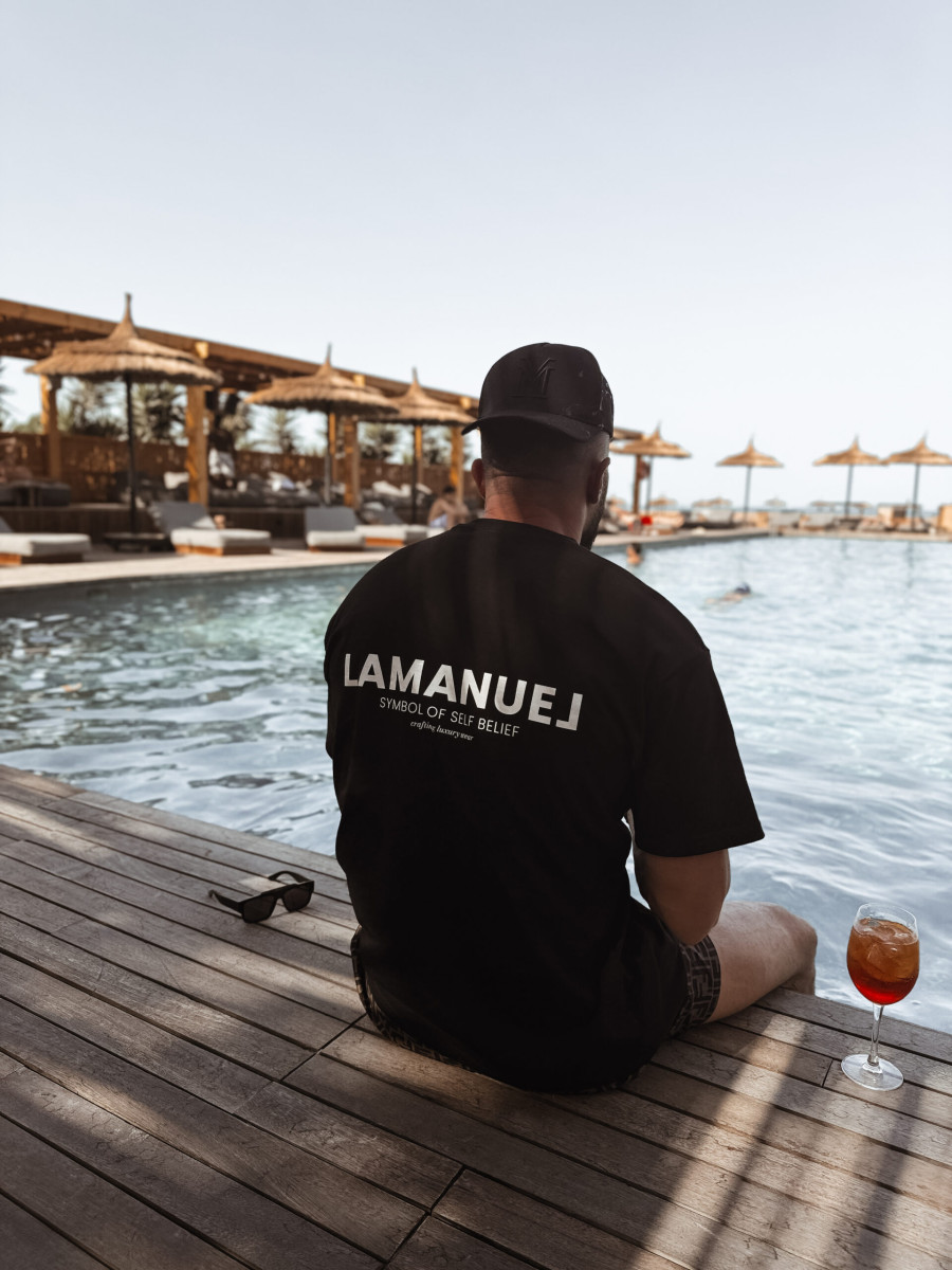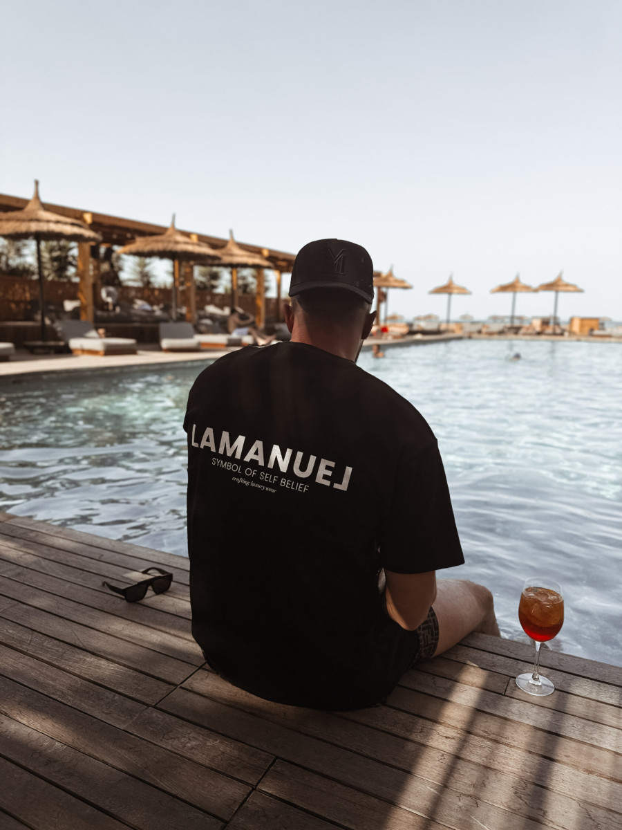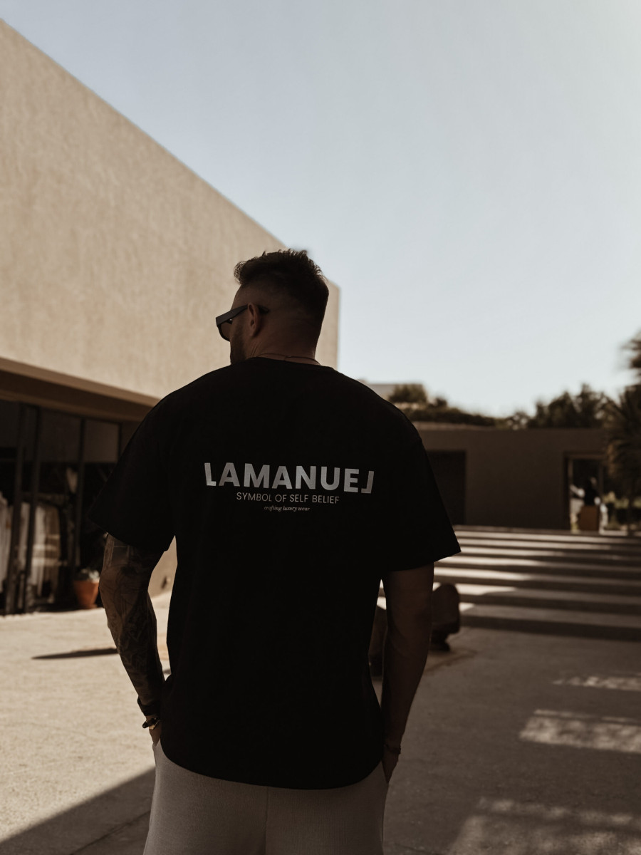 Lekko oversizowa koszulka z krótkim rękawem wykonana z wysokiej jakości bawełny o średniej grubości. Posiada okrągły, prążkowany dekolt. Charakterystyczne logo - “ Symbol of Self belief” z przodu na klatce piersiowej i na plecach.
