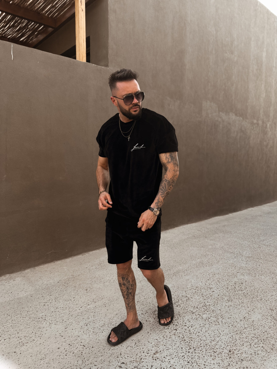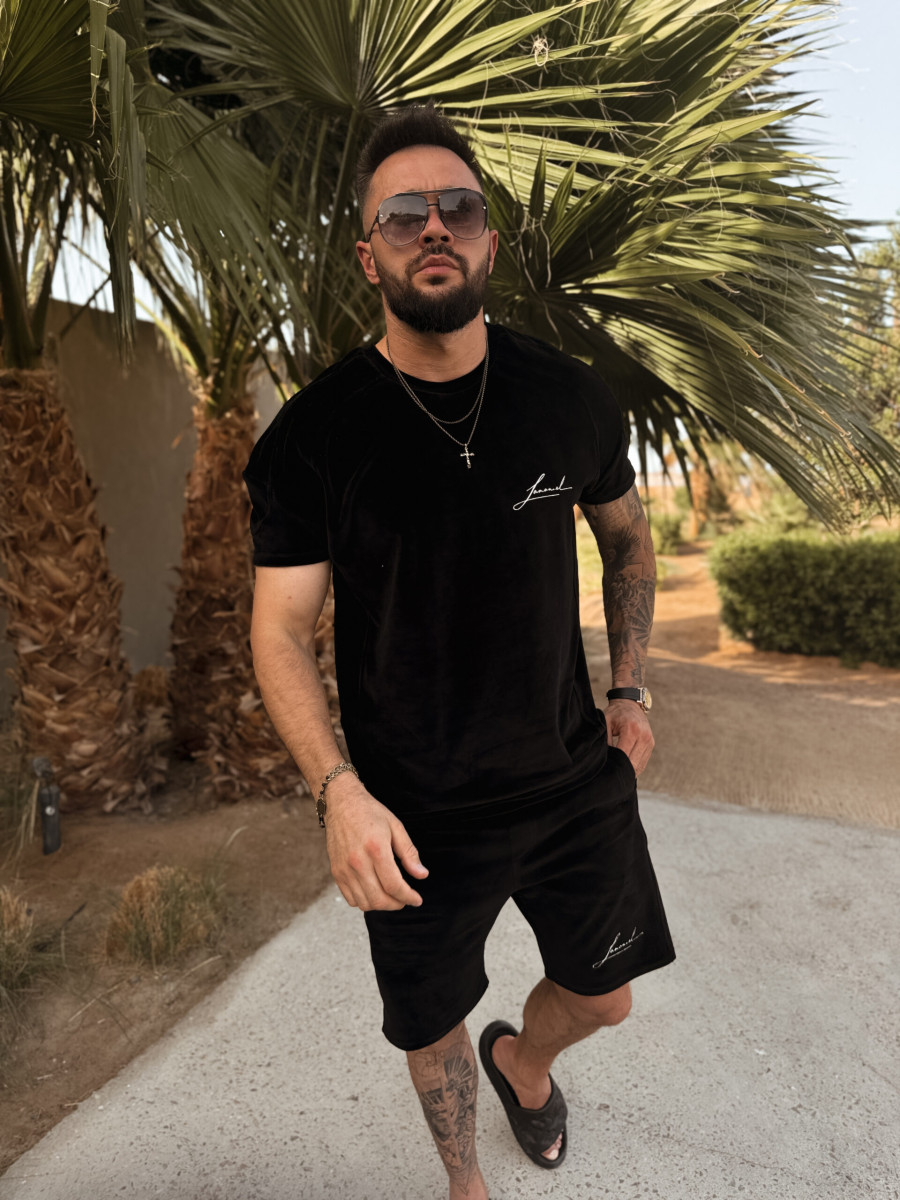 Velurowa koszulka o regularnym kroju z ciekawymi przeszyciami, wykonana z wysokiej jakości weluru. Stylowy haft z logiem marki z przodu na klatce piersiowej oraz delikatne logo z tyłu na plecach. Połącz go w zestawie z naszymi szortami Velour Initial.