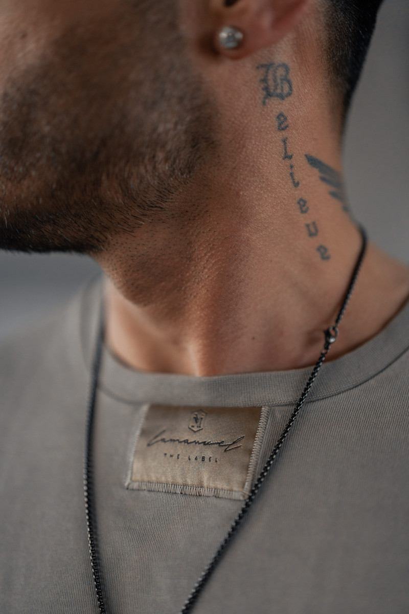 Tshirt o klasycznym kroju z charakterystyczną żakardowa, złotą metką przy dekolcie oraz czarnym haftowanym logotypem marki na rękawie. Wykonana ze 100% bawełny organicznej poddana praniu zmiękczającemu dla jeszcze ciekawszego efektu. Klasyczny okrągły dekolt z krótkimi rękawami został zaprojektowany z myślą o swobodnym kroju.