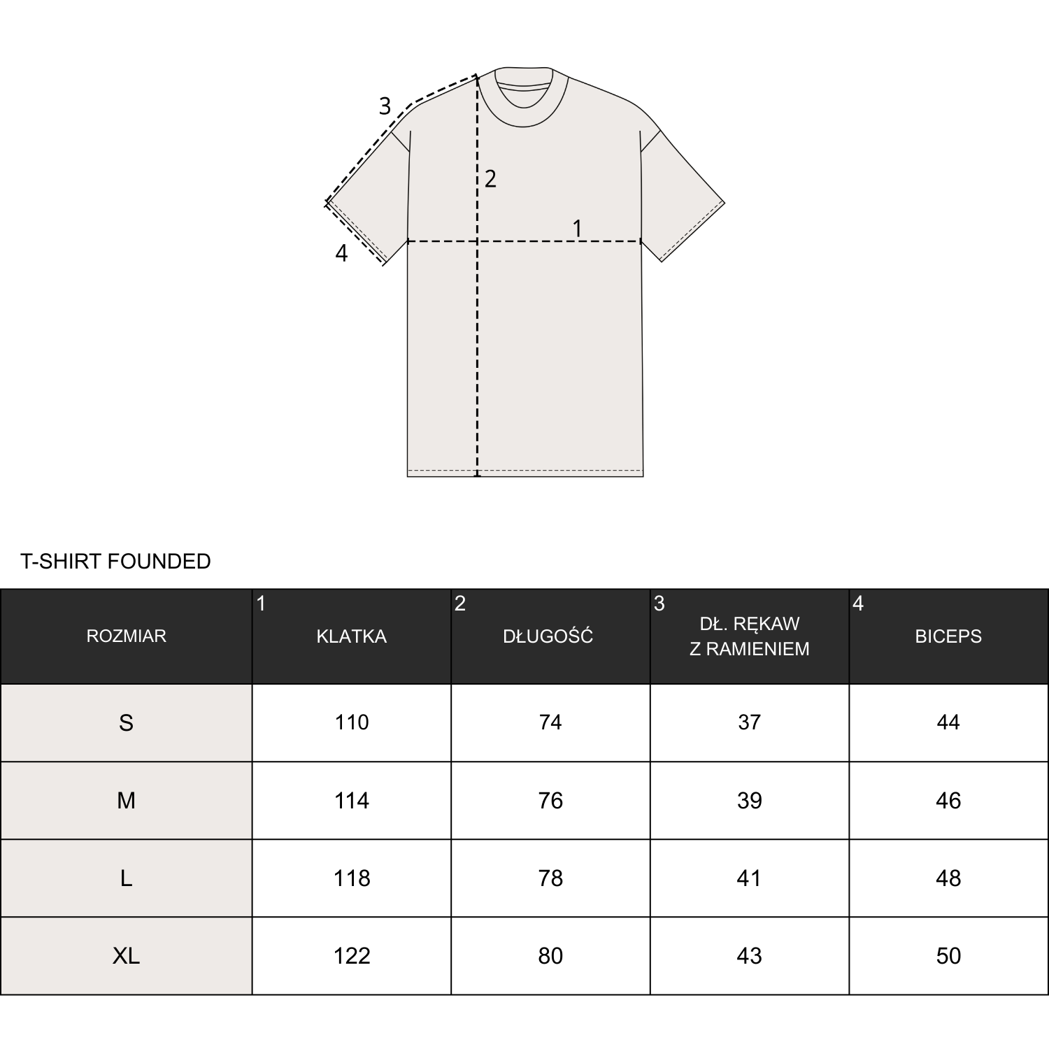 | Biceps | 44 cm | 46 cm | 48 cm | 50 cm |
