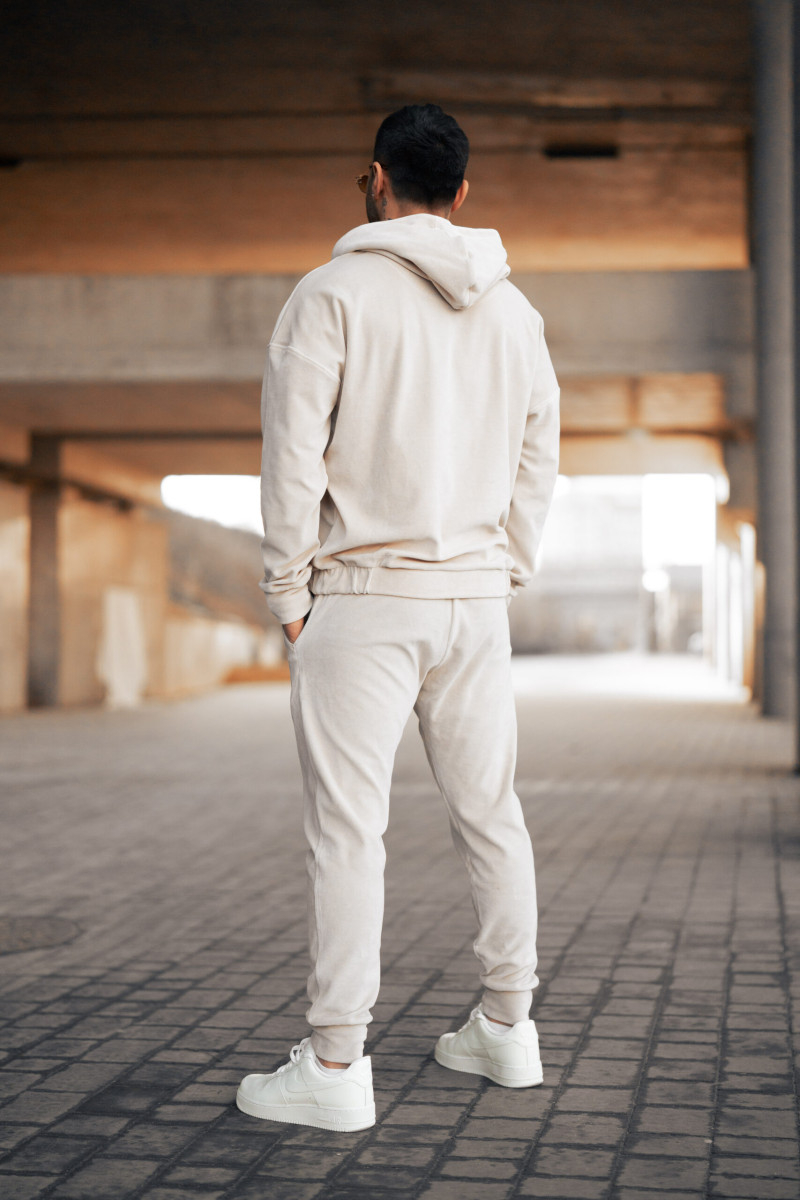 Spodnie welurowe z logo. Idealne dopełnienie bluzy – te spodnie z weluru bawełnianego łączą wygodę i styl. Miękki materiał zapewnia komfort noszenia, a zwężane nogawki podkreślają nowoczesny fason. Haftowane sezonowe logo marki nadaje im charakteru, tworząc spójny look w komplecie. Świetnie sprawdzą się zarówno w sportowych, jak i codziennych stylizacjach. Noś je razem z bluzą „SIGN” dla pełnego efektu!
