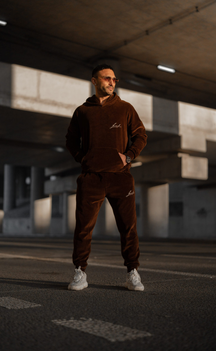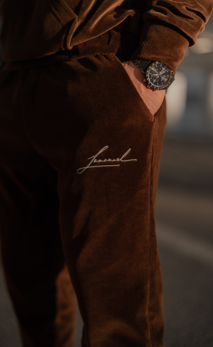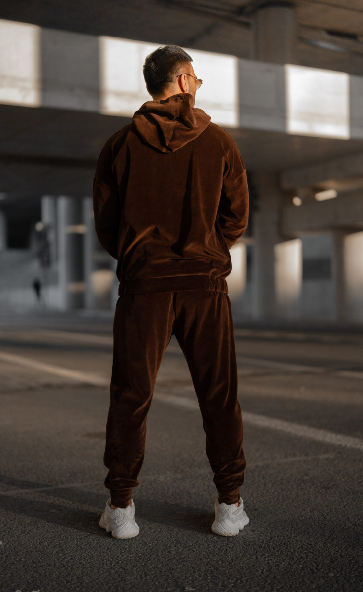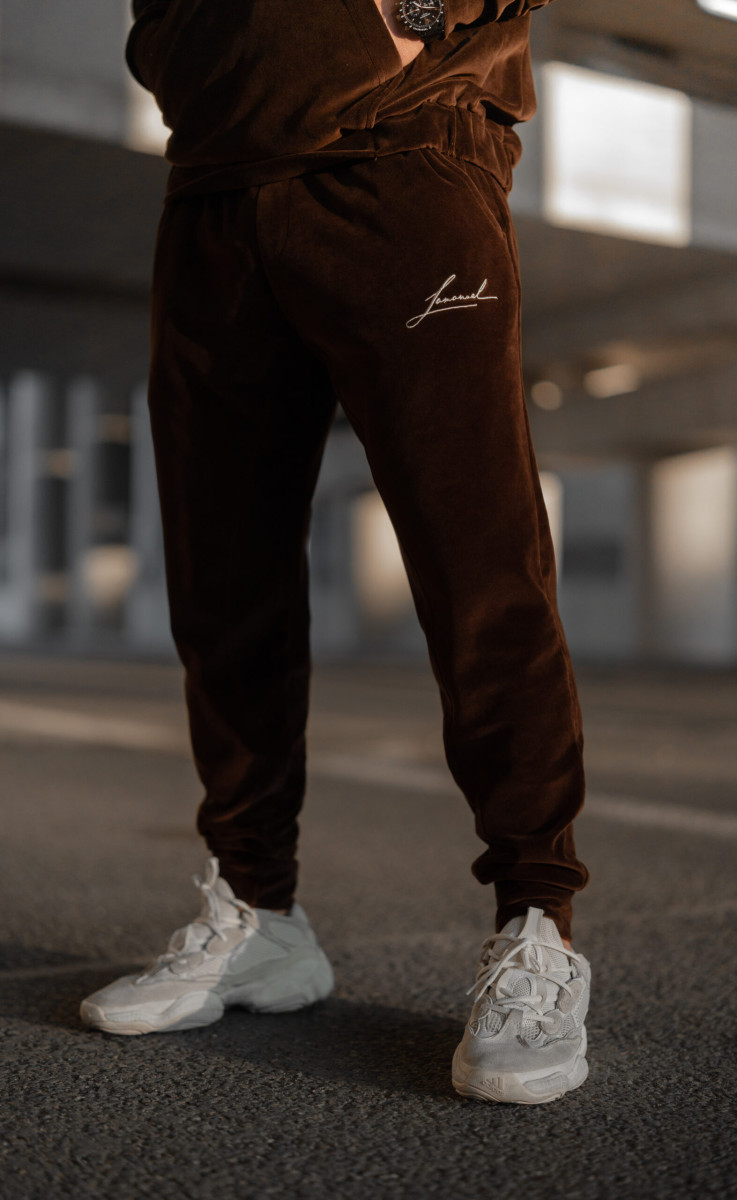 Spodnie welurowe z logo. Idealne dopełnienie bluzy – te spodnie z weluru bawełnianego łączą wygodę i styl. Miękki materiał zapewnia komfort noszenia, a zwężane nogawki podkreślają nowoczesny fason. Haftowane sezonowe logo marki nadaje im charakteru, tworząc spójny look w komplecie. Świetnie sprawdzą się zarówno w sportowych, jak i codziennych stylizacjach. Noś je razem z bluzą „SIGN” dla pełnego efektu!