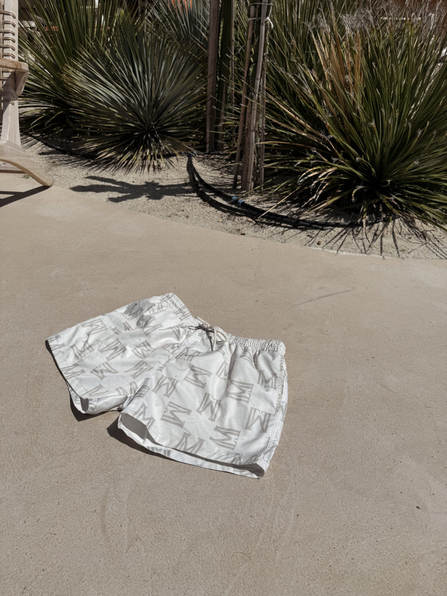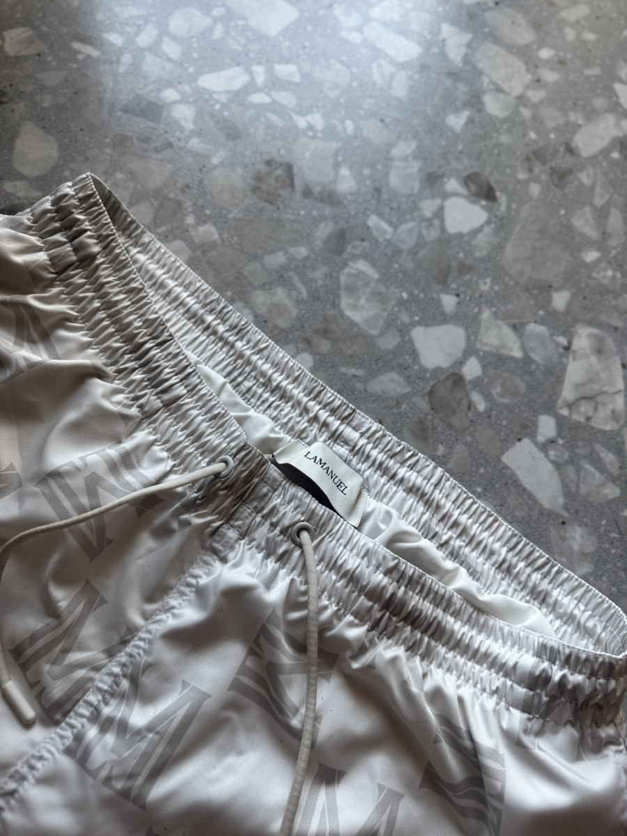Eleganckie kąpielówki z charakterystycznym monogramem marki LAMANUEL. Idealne na plażę i basen, doskonale uzupełnią każdą letnią stylizację. Wykonane z szybkoschnącego materiału, wyposażone w elastyczną siateczkę wewnętrzną dla lepszej wentylacji i komfortu noszenia. Posiadają regulowaną talię oraz kieszeń zapinaną na suwak.