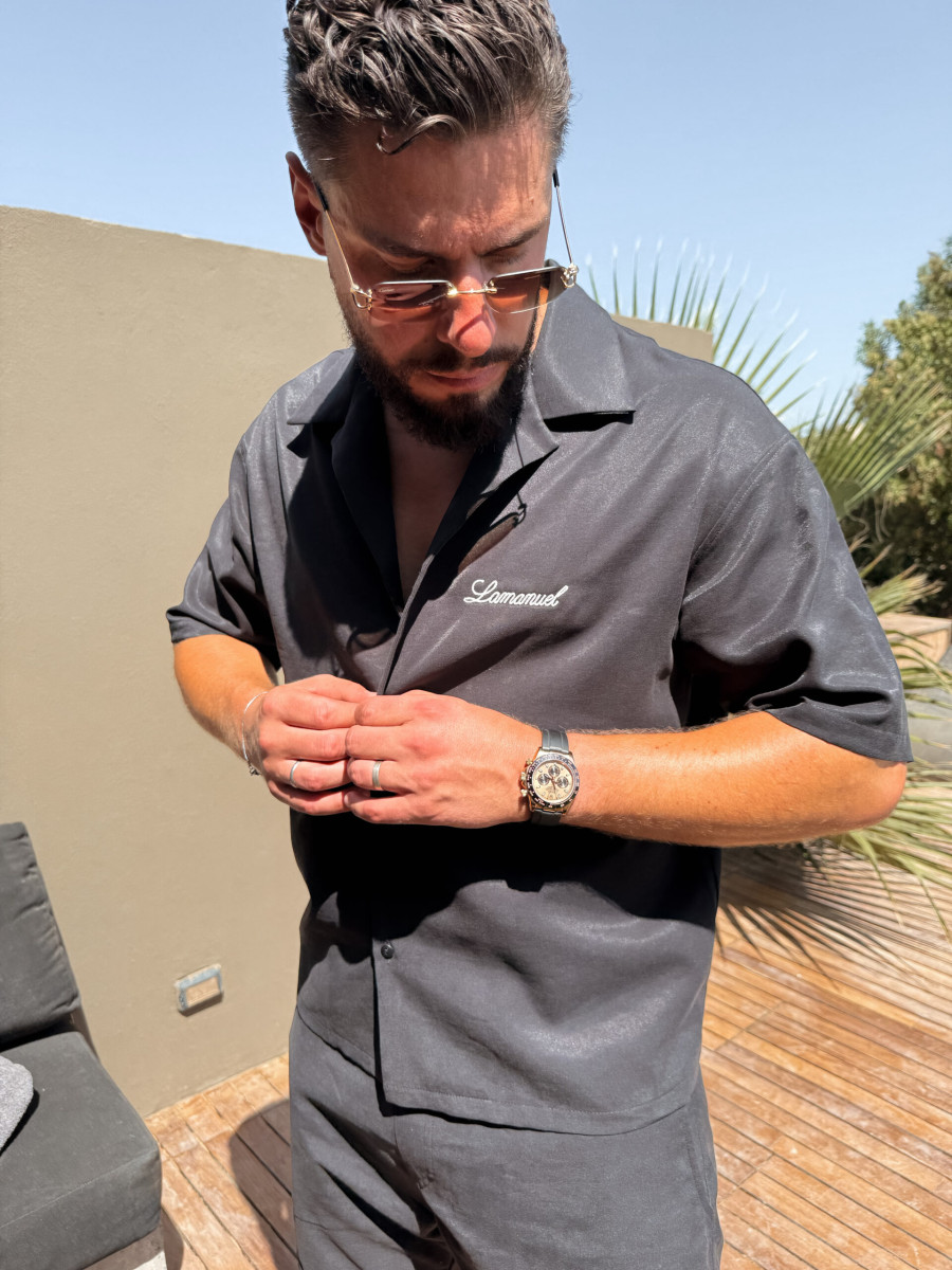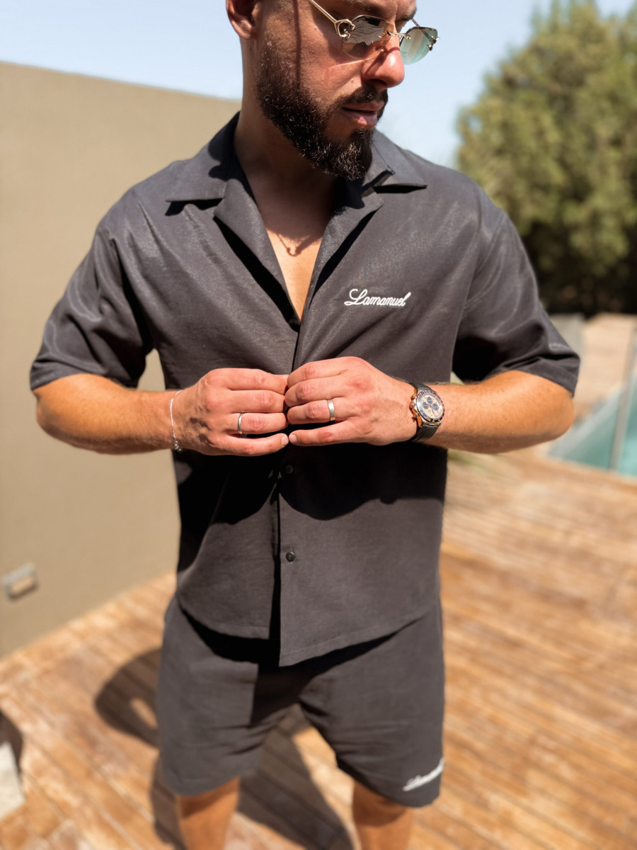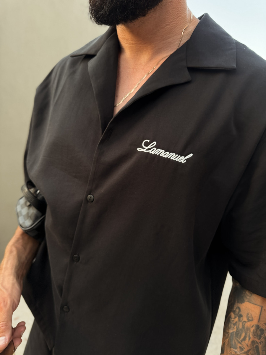 Lekko luźna, rozpinana koszula wykonana z tkaniny o przyjemnej strukturze, zaprojektowana z myślą o letnich wieczorach. Na piersi znajduje się haft wykonany splotem łańcuszkowym, który dyskretnie sygnuje całość bez nadmiaru. Jej ponadczasowy krój i wyważony minimalizm sprawiają, że sprawdzi się zarówno narzucona na t-shirt, jak i noszona solo.