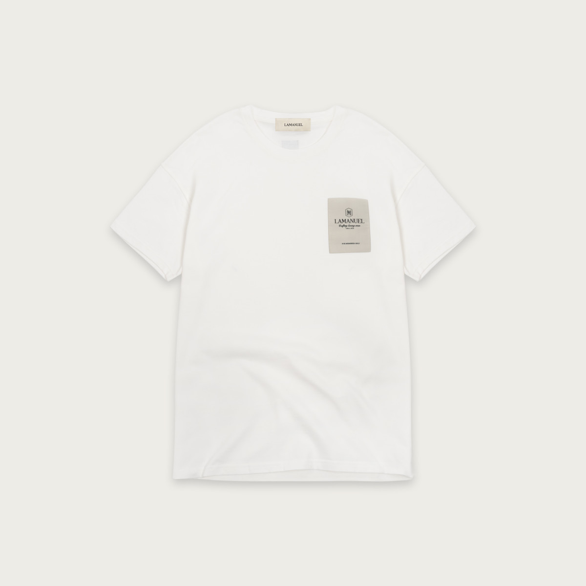 T-shirt o regularnym kroju wykonany z wysokogatunkowej, mięsistej bawełny, która zapewnia komfort, trwałość i ponadczasowy wygląd. Z przodu zdobiony żakardową naszywką z logo LAMANUEL, starannie wszytą na wysokości klatki piersiowej. Z tyłu, na karku, dyskretnie wszyta mała metka brandingowa, która dopełnia cały minimalistyczny look.