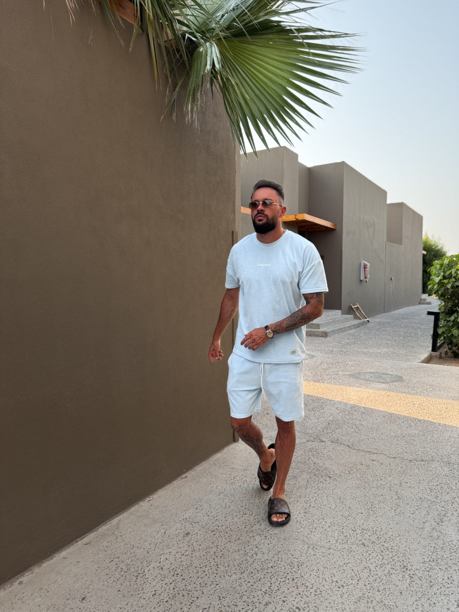 Koszulka wykonana z miękkiego, bawełnianego weluru, który nadaje jej eleganckiego wykończenia i wyjątkowego komfortu noszenia. Na piersi umieszczono subtelny haft z logo LAMANUEL, a przy dolnej krawędzi znajduje się delikatna żakardowa naszywka – dyskretny znak rozpoznawczy kolekcji. Styl, który przyciąga uwagę bez krzyku. Doskonale komponuje się ze spodenkami welurowymi z tej samej linii – razem tworzą ponadczasowy set.