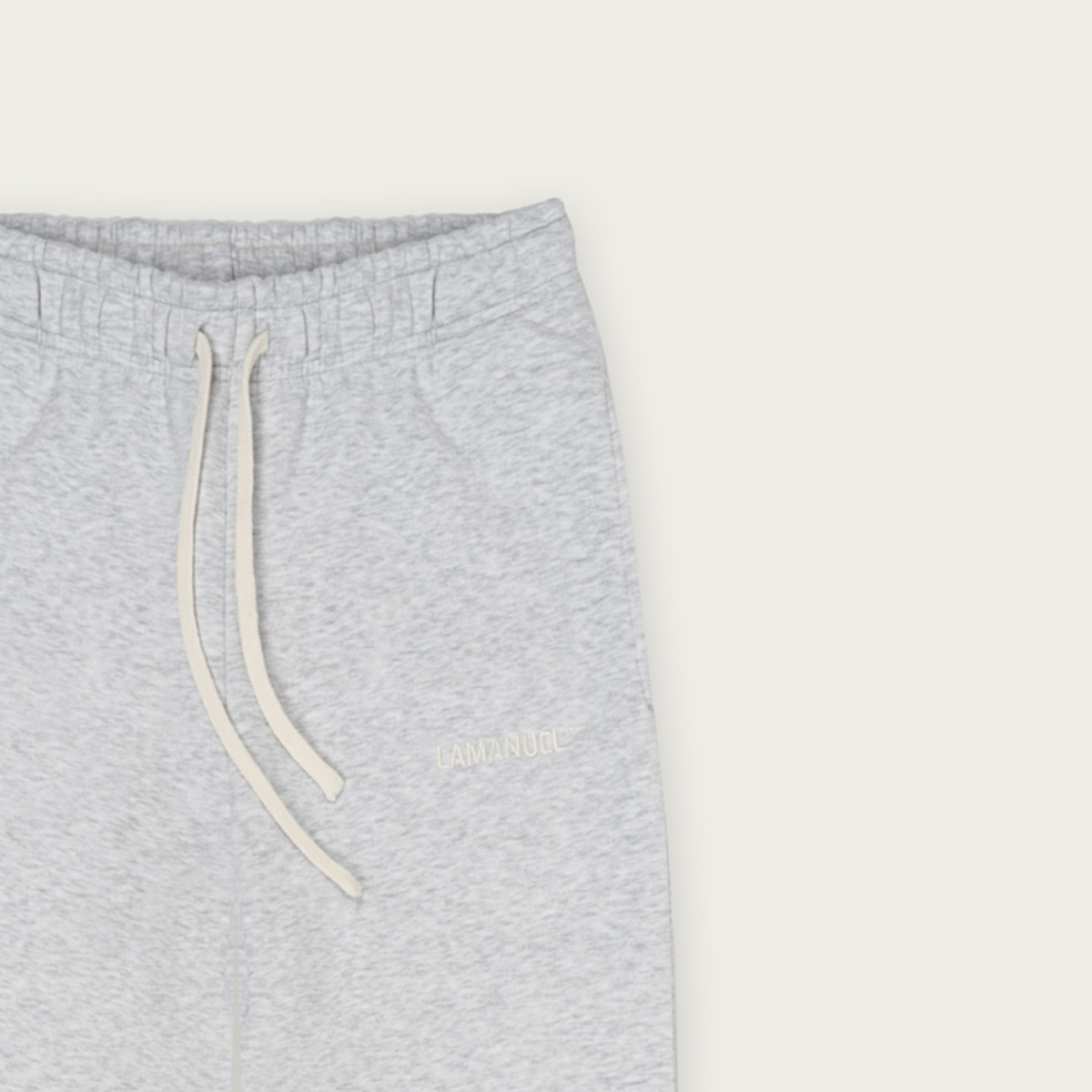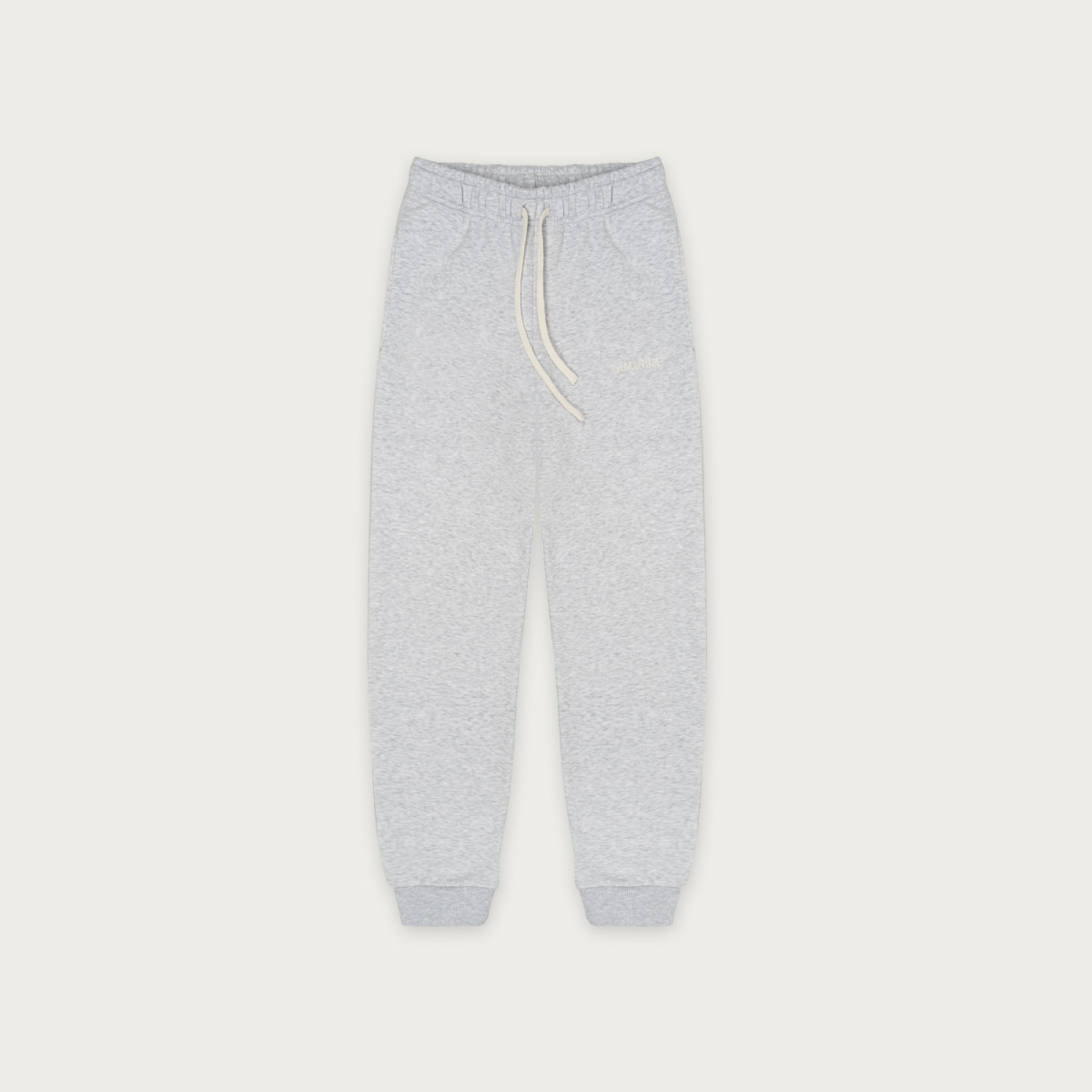 Spodnie posiadają minimalistyczne, haftowane logo marki, stanowiące dyskretny akcent identyfikacyjny projektu. Elastyczny pas z regulacyjnym sznurkiem umożliwia indywidualne dopasowanie, natomiast ściągacze przy nogawkach stabilizują konstrukcję i podkreślają nowoczesny, dopracowany charakter sylwetki.