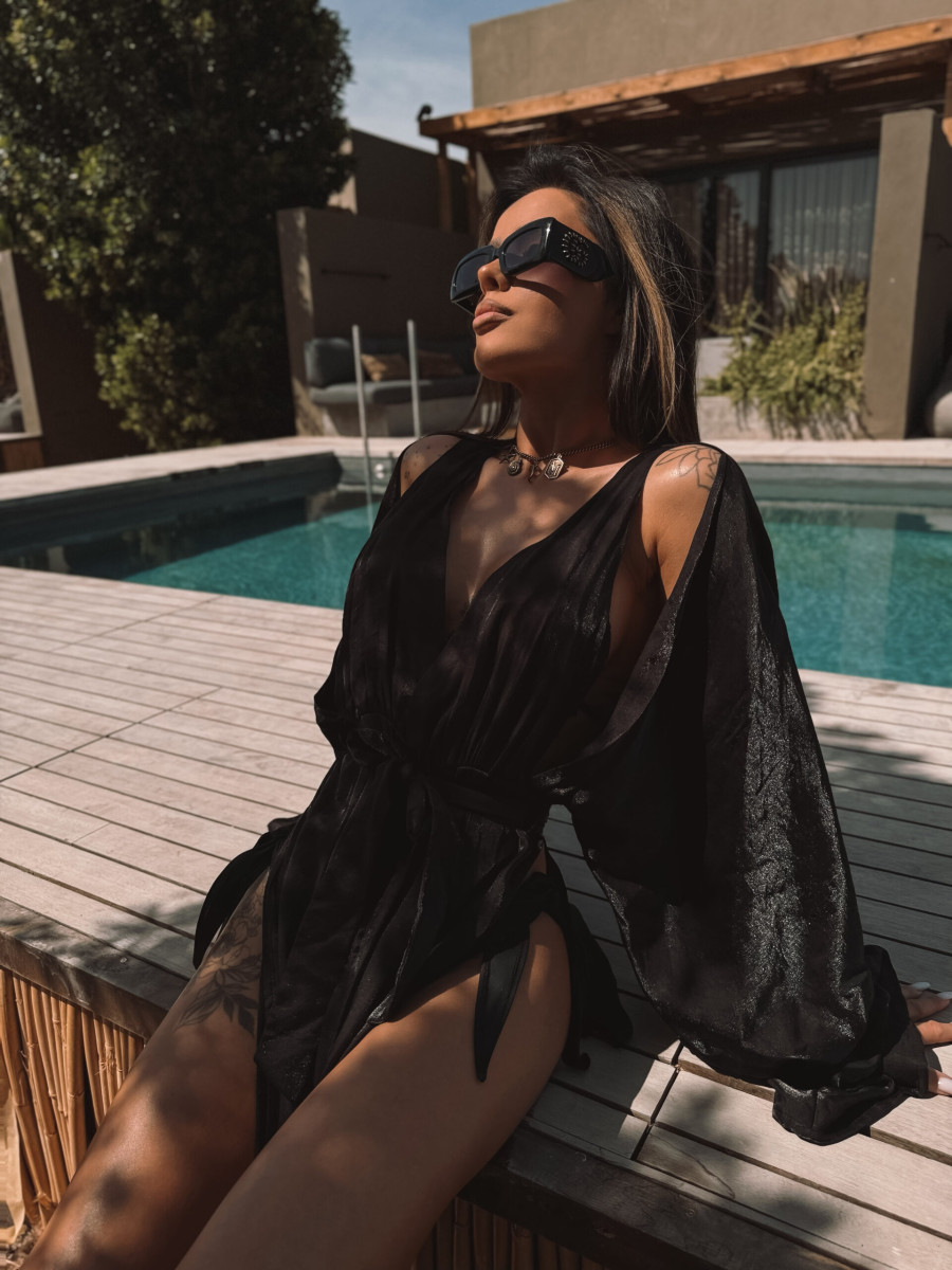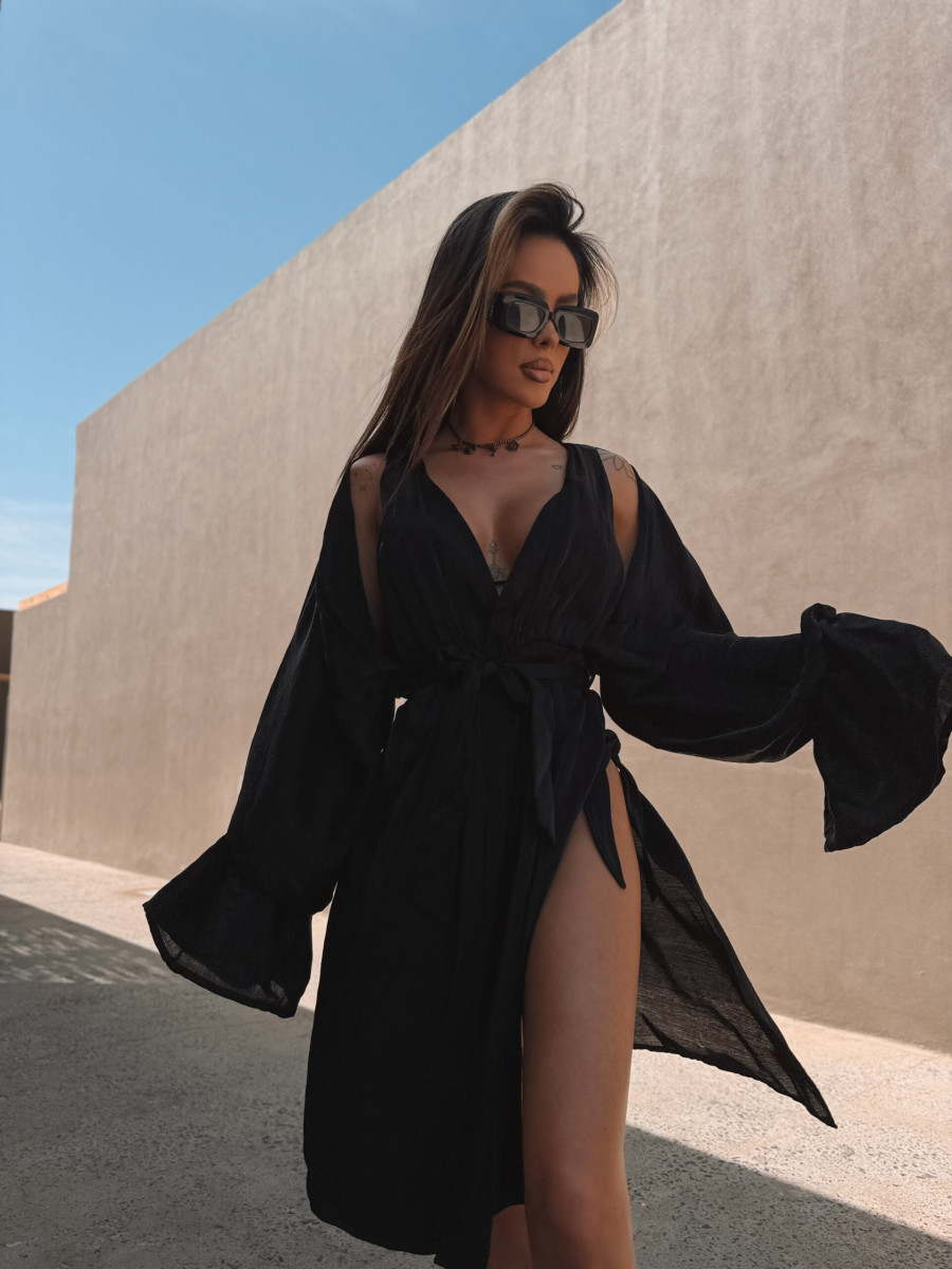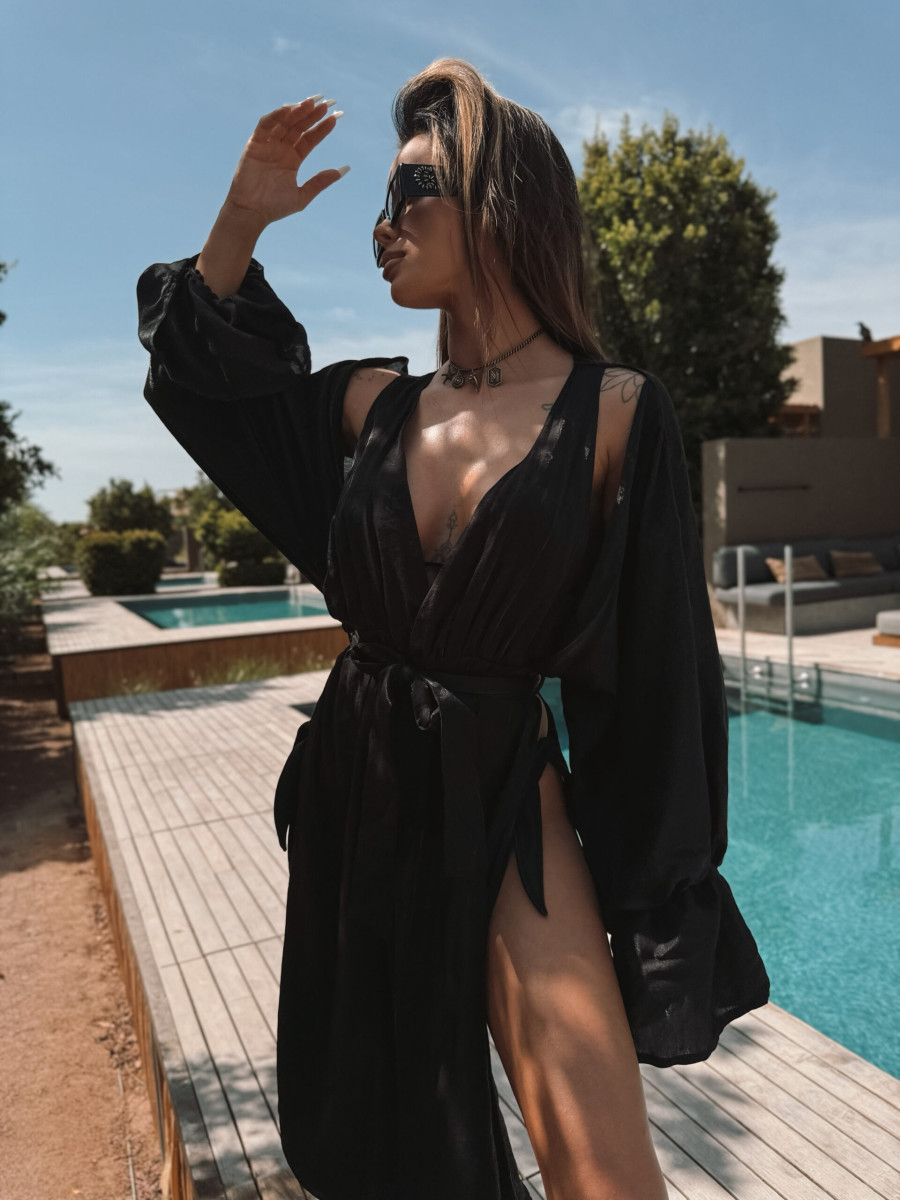 Eleganckie kimono damskie, które jest synonimem stylu i wygody. To połączenie tradycji z nowoczesnością, które sprawia, że każda kobieta poczuje się wyjątkowo nosząc ten niezwykły strój. Kimono z długim rękawem jest doskonałym wyborem na wiele okazji, od relaksujących wieczorów w domu po spotkania ze znajomymi. Jego miękki materiał otula ciało, zapewniając przyjemne uczucie noszenia, jednocześnie podkreślając elegancję i wdzięk. Wycięty dekolt dodaje kimono nuty lekkości i kobiecości, podczas gdy wiązanie umieszczone na przodzie pozwala na regulację i dopasowanie do sylwetki. To subtelny detal, który nadaje całości charakteru i stylu.