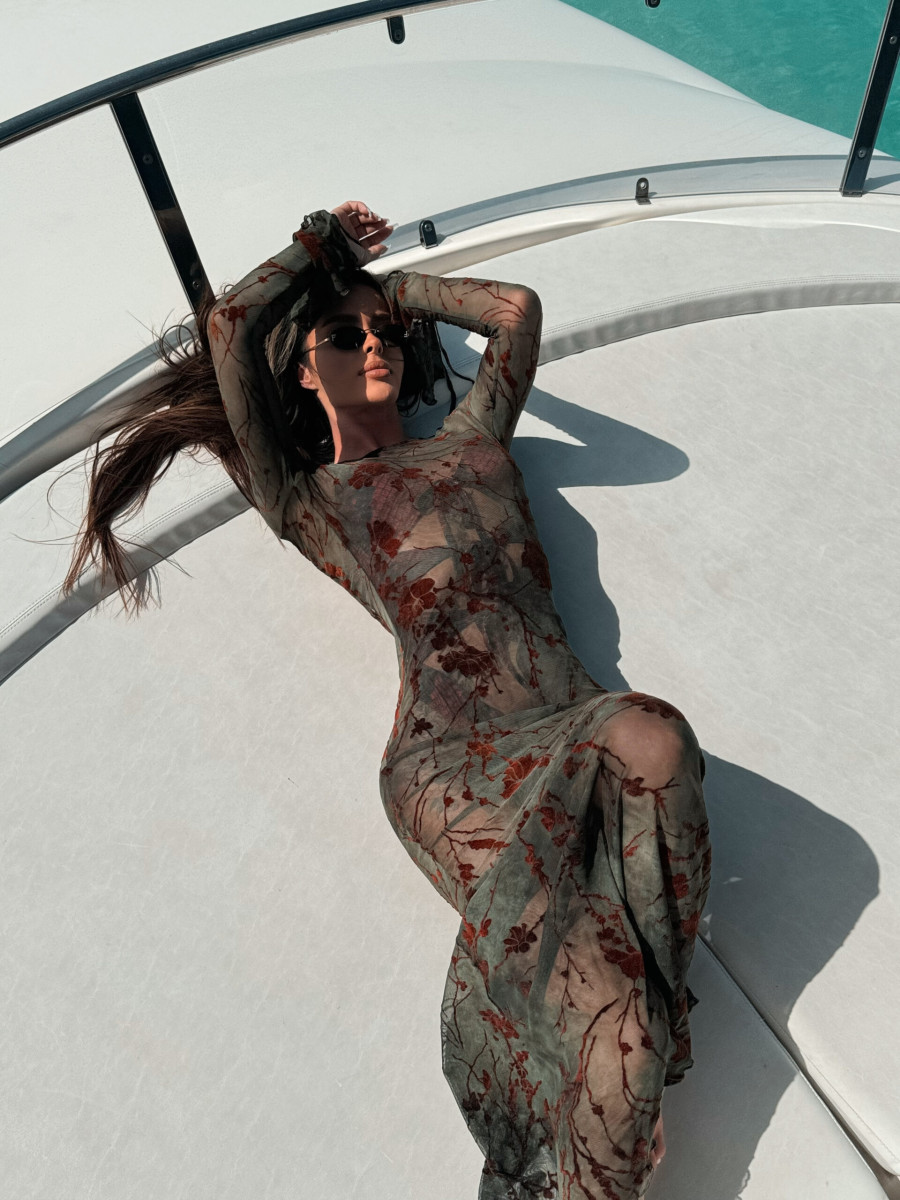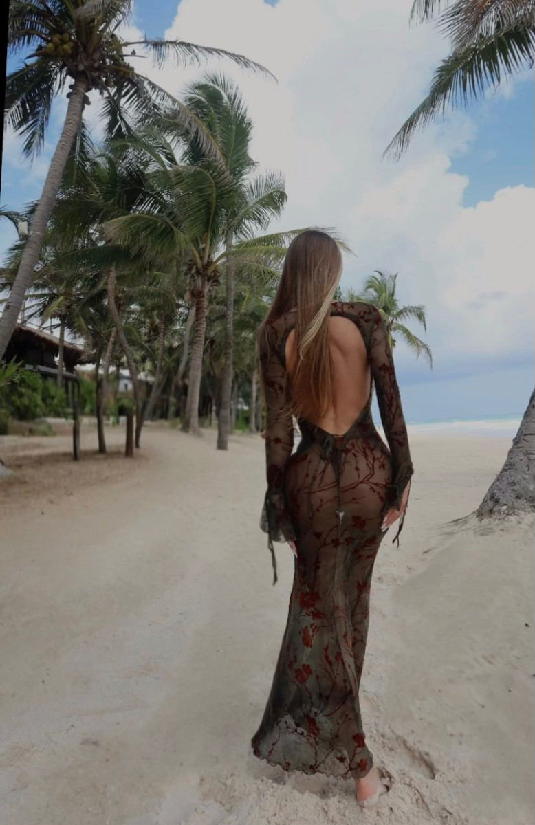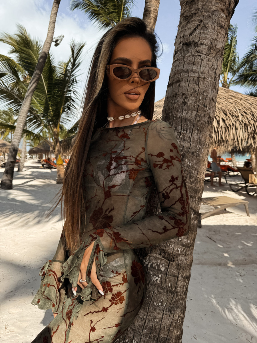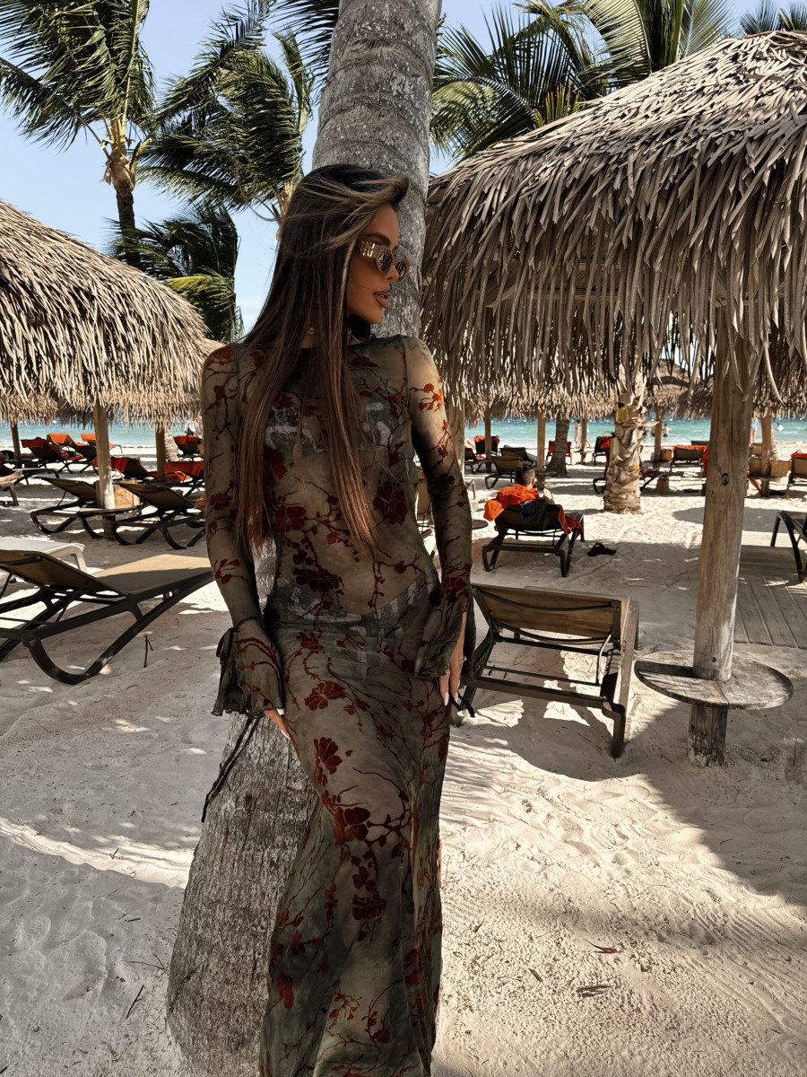 Odkryte plecy, które można regulować tasiemką, dodają nonszalancji, a długie, delikatnie rozszerzane rękawy wprowadzają nutę boho glamour. To idealna kreacja na złote plaże, luksusowe kurorty i zachody słońca, które wymagają czegoś więcej niż zwykły strój plażowy. Wystarczy dodać ulubione sandały, biżuterię i kieliszek schłodzonego prosecco – reszta zrobi się sama.