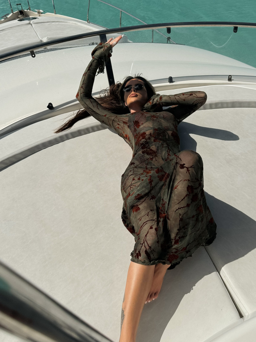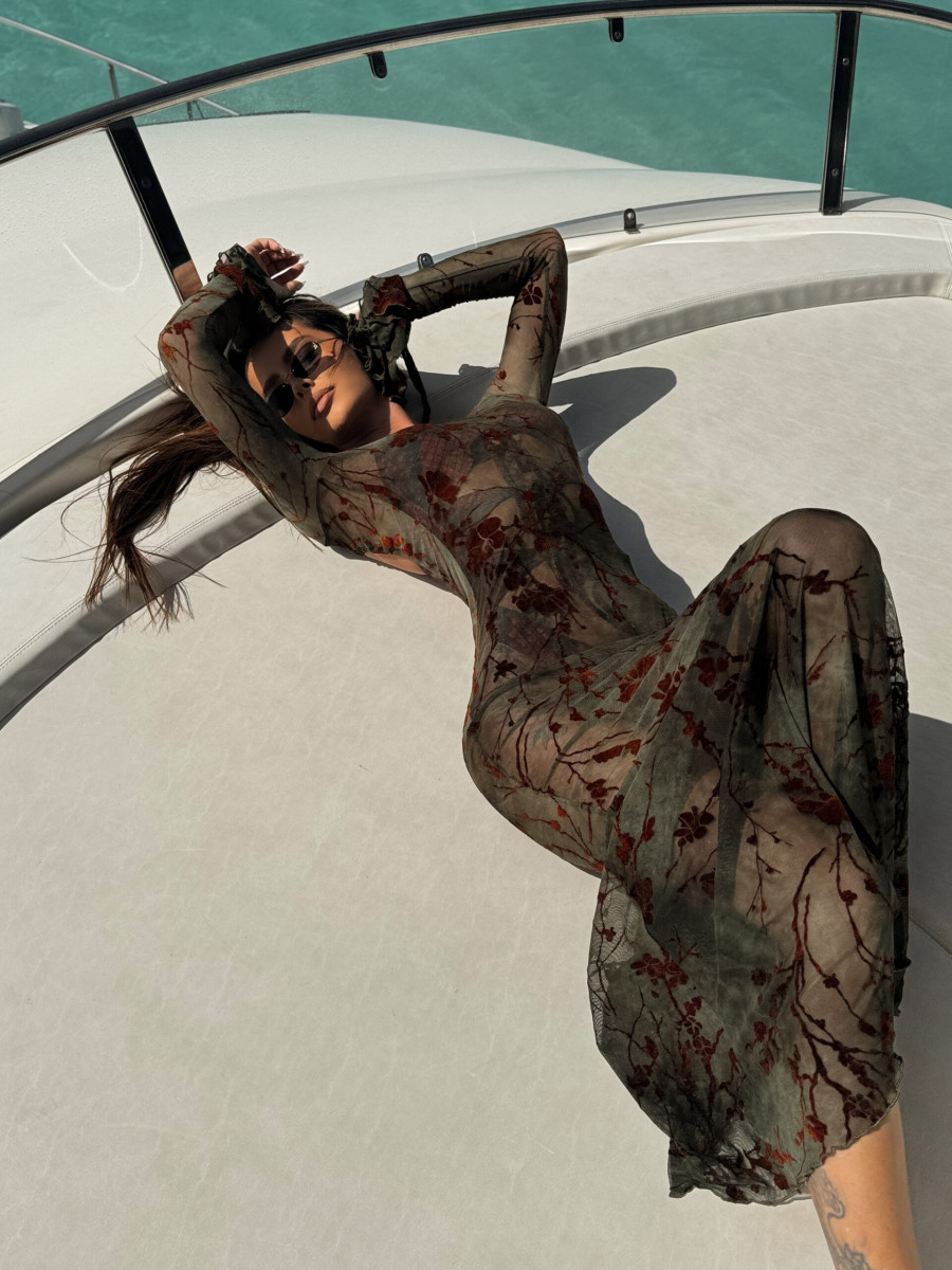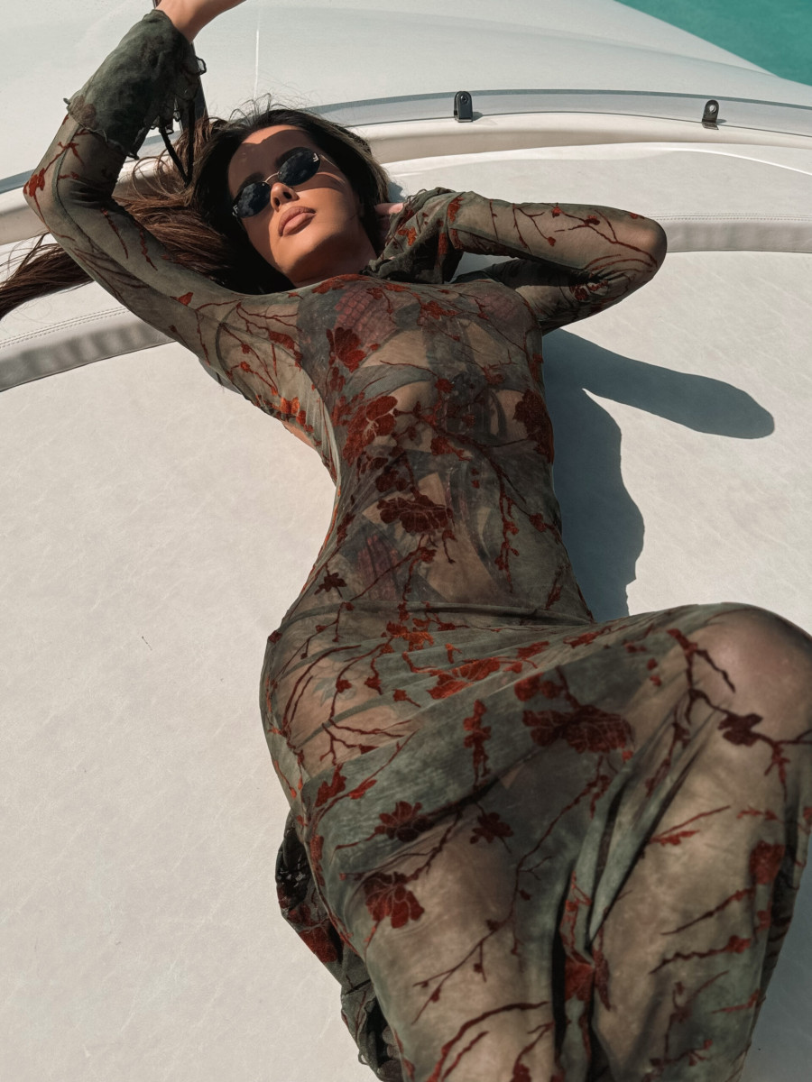 Odkryte plecy, które można regulować tasiemką, dodają nonszalancji, a długie, delikatnie rozszerzane rękawy wprowadzają nutę boho glamour. To idealna kreacja na złote plaże, luksusowe kurorty i zachody słońca, które wymagają czegoś więcej niż zwykły strój plażowy. Wystarczy dodać ulubione sandały, biżuterię i kieliszek schłodzonego prosecco – reszta zrobi się sama.