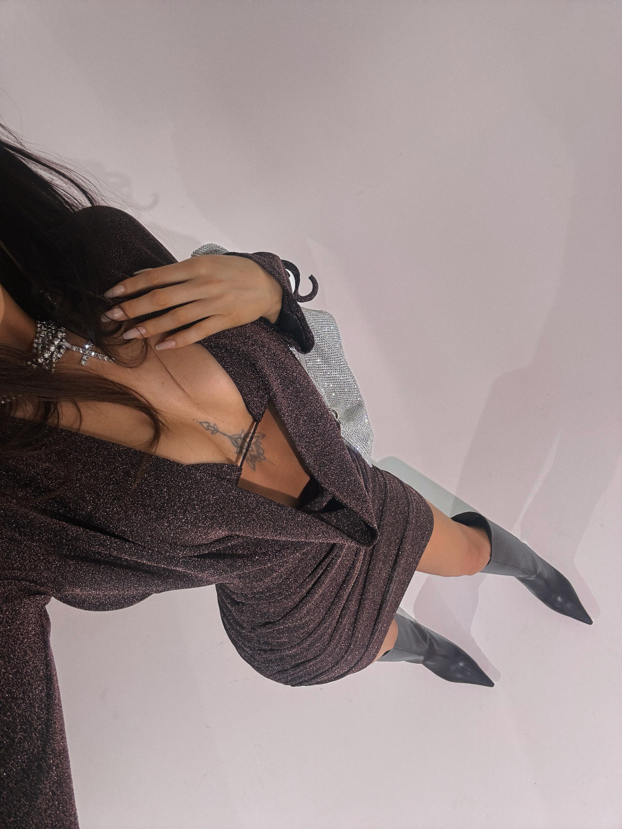 Sukienka damska Bliss stworzona z lejącego, połyskującego materiału, który mieni się przepięknie w świetle fleszy. Sukienka jest w zestawie z górą od bikini, ale można ją również połączyć ze zwykłym topem. Mega seksowna propozycja, obok której nie przejdzie nikt obojętnie. Wyróżniaj się z tłumu i czuj się jak gwiazda!