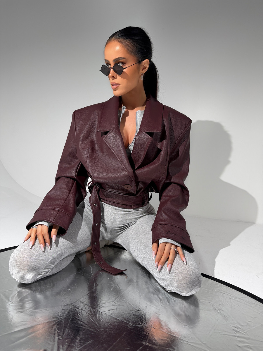 Kurtka wykonana z wysokiej jakości eko skóry o wyrazistej strukturze. Klasyczny fason z szerokimi ramionami i mocno zarysowaną linią kołnierza. Dwurzędowe zapięcie z dużymi guzikami i pasek z klamrą w talii podkreślają kobiecą sylwetkę. Stylowa, mocna forma – idealna do jeansów i codziennych looków.